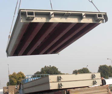 3、國際通用、U型鋼組焊、拋丸防腐處理、高強(qiáng)度秤臺 3.1、簡述: 秤臺由于其體積和重量都比較大,安裝的工作量也非常大,價(jià)值也比較高,出了問題在端時(shí)間內(nèi)難以排除,故其使用年限的長短將直接影響用戶的利益,而在秤臺所有的要求中,除了材料要用對、用到位外,非常關(guān)鍵的就是表面的防腐效果如何,如果防腐處理不過關(guān),秤臺在使用很短一段時(shí)間后鐵銹就會出來,也就說明,秤臺開始生銹腐蝕了,這樣秤臺勢必會在比較短的時(shí)間內(nèi)發(fā)生斷裂、坍塌等事故,給用戶造成損失,故秤臺的選用一定要慎重! 本公司汽車衡鋼結(jié)構(gòu)秤臺采用國際標(biāo)準(zhǔn)的U形冷彎型鋼組焊,屬超高強(qiáng)度秤體,全部構(gòu)件制作工藝先進(jìn),質(zhì)量穩(wěn)定可靠。完全實(shí)現(xiàn)了模塊化、系列化和標(biāo)準(zhǔn)化生產(chǎn),體系列標(biāo)準(zhǔn)尺寸有5m,6m,7m三種,可以根據(jù)稱量的大小,自由組合成各種規(guī)格、多種稱量的秤臺。