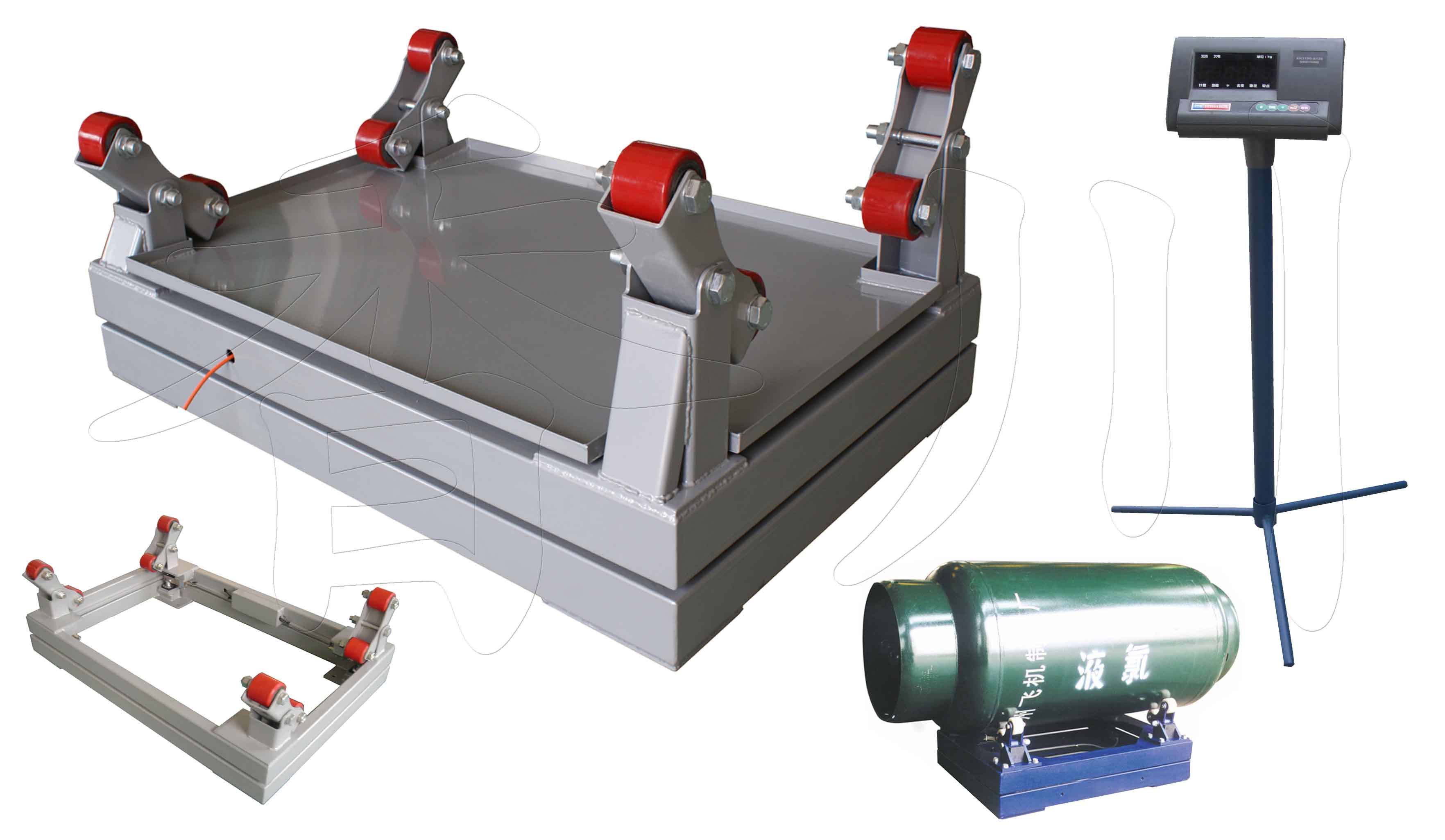 DCS-XC-G型雙層鋼瓶秤,臺(tái)面采用碳鋼也可選不銹鋼鋼板覆蓋,可防止液氯外瀉時(shí)對(duì)秤體腐。 受力部位采用尼龍滑輪(氯瓶托架)與復(fù)合彈簧緩沖裝置,能有效防止氯瓶對(duì)秤體的沖擊。 支架采用與氯瓶相吻合的能根據(jù)氯瓶外形大小自動(dòng)調(diào)整的“V”形導(dǎo)向裝置。 采用上下雙秤臺(tái)設(shè)計(jì),中間有三梁式傳感器單支撐,與傳統(tǒng)雙梁式傳感器相。 比具有抗偏、抗扭,過(guò)載能力強(qiáng)、精度高的特點(diǎn),傳感器安裝在中間。能避免液氯對(duì)傳感器的腐蝕。 傳感器外表采用塑封處理,防止腐蝕。 下秤體采用調(diào)節(jié)螺桿支撐,方便對(duì)秤體在不同位置的平行調(diào)節(jié)。 儀表設(shè)計(jì)下限值設(shè)定,當(dāng)重量達(dá)到下限設(shè)定值時(shí)會(huì)自動(dòng)報(bào)警,合理控制液氯的量。(選配) 配置大屏幕顯示器及打印接口提供顯示及打印,實(shí)現(xiàn)遠(yuǎn)距離監(jiān)控,改善工作條件減輕操作人員勞動(dòng)強(qiáng)度。(選配) 配用防塵A12E型號(hào)的稱重顯示儀表,可實(shí)現(xiàn)不同的稱重管理和計(jì)量功能。對(duì)于有安全要求的行業(yè),可配防爆裝置,用于防爆環(huán)境中。還可選配打印機(jī)、大屏幕顯示器。